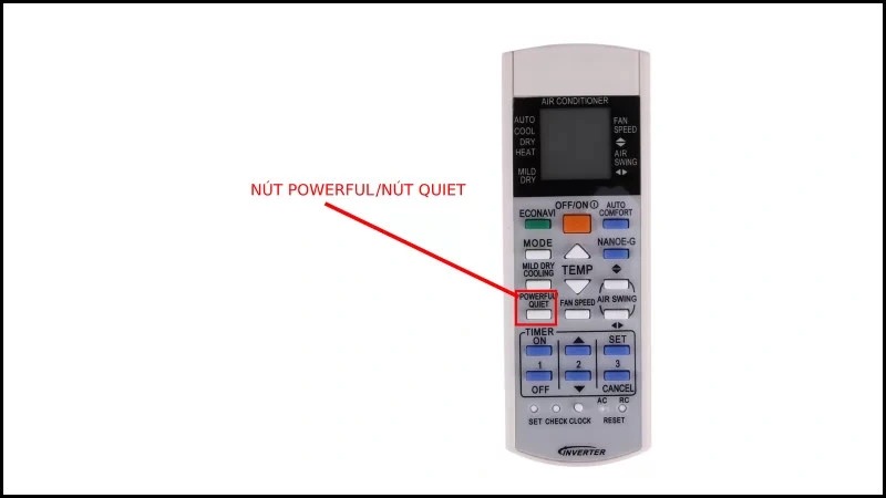 Trên điều khiển từ xa, chế độ Quiet thường được hiển thị:
