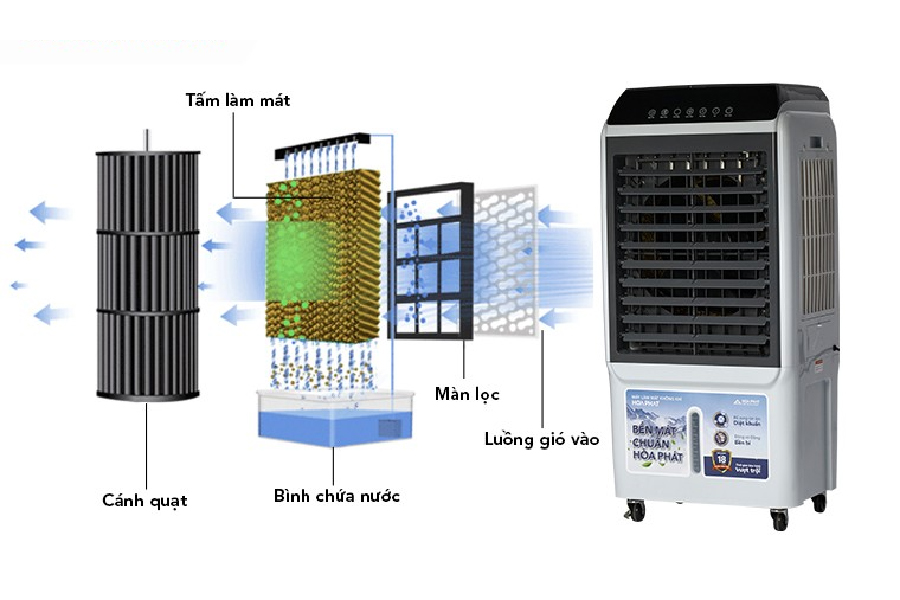 Quạt điều hòa hoạt động dựa trên nguyên lý làm mát bằng hơi nước.