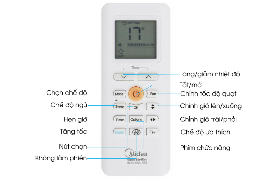 🔘 Các nút chức năng trên remote Midea